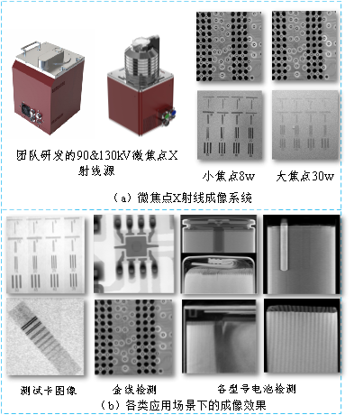 图1微焦点X射线成像系统及各类应用场景下的成像效果