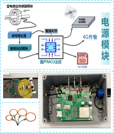 在国家自然科学基金项目、企业横向项目支持下,本中心团队研制了雷电信号采集系统(图1),该系统具备宽频带、高精度、低时延等技术特性,关键参数如下:①适用传感器类型:电场、磁场、罗氏线圈;②响应频率范围:1 kHz~2 MHz;③信号输入范围:±10V或±100 mV,可切换;④信号处理能力:50 Hz工频干扰滤除,增益可调;⑤触发响应延迟:6 ns,时间戳误差<100 ns;⑥AD采样率范围:250 kHz~1 MHz;⑦支持北斗、GPS、GLONASS授时系统,误差<30 ns;⑧数据存储与传输:支持本地SD卡(256 GB)及4G远程传输。