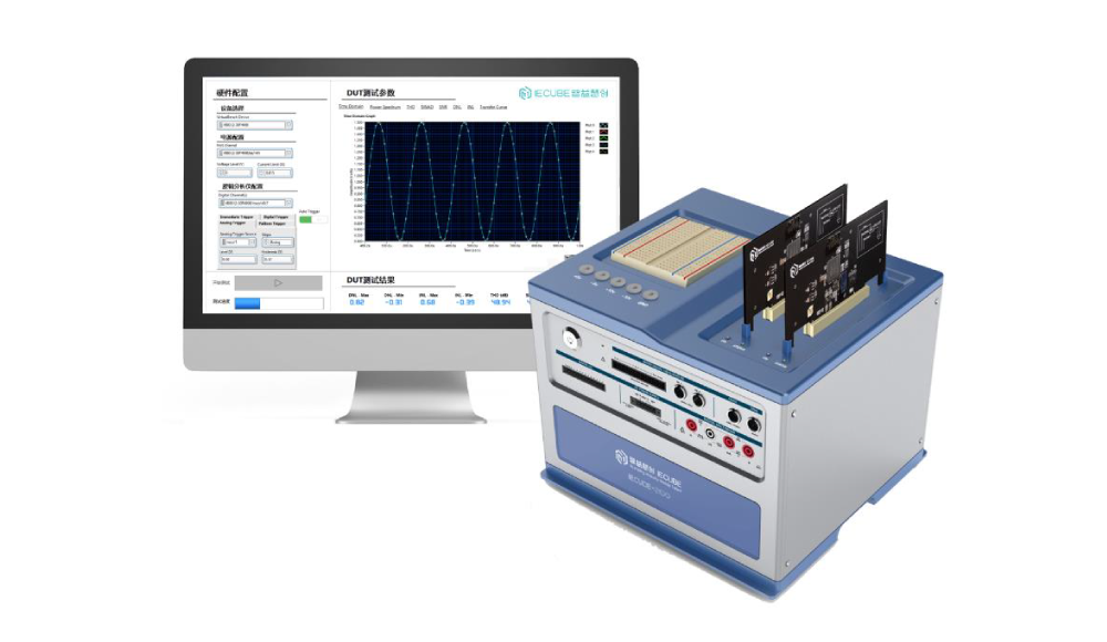 IECUBE-3100集成电路测试实训平台是一个源于集成电路行业实际工业应用场景,基于集成电路行业国际领先的NI测试测量技术,针对集成电路测试技能培养而专门开发的实训平台,可以完成包括ADC、DAC、PA、数字逻辑IC以及晶体管等典型集成电路的测试实训。