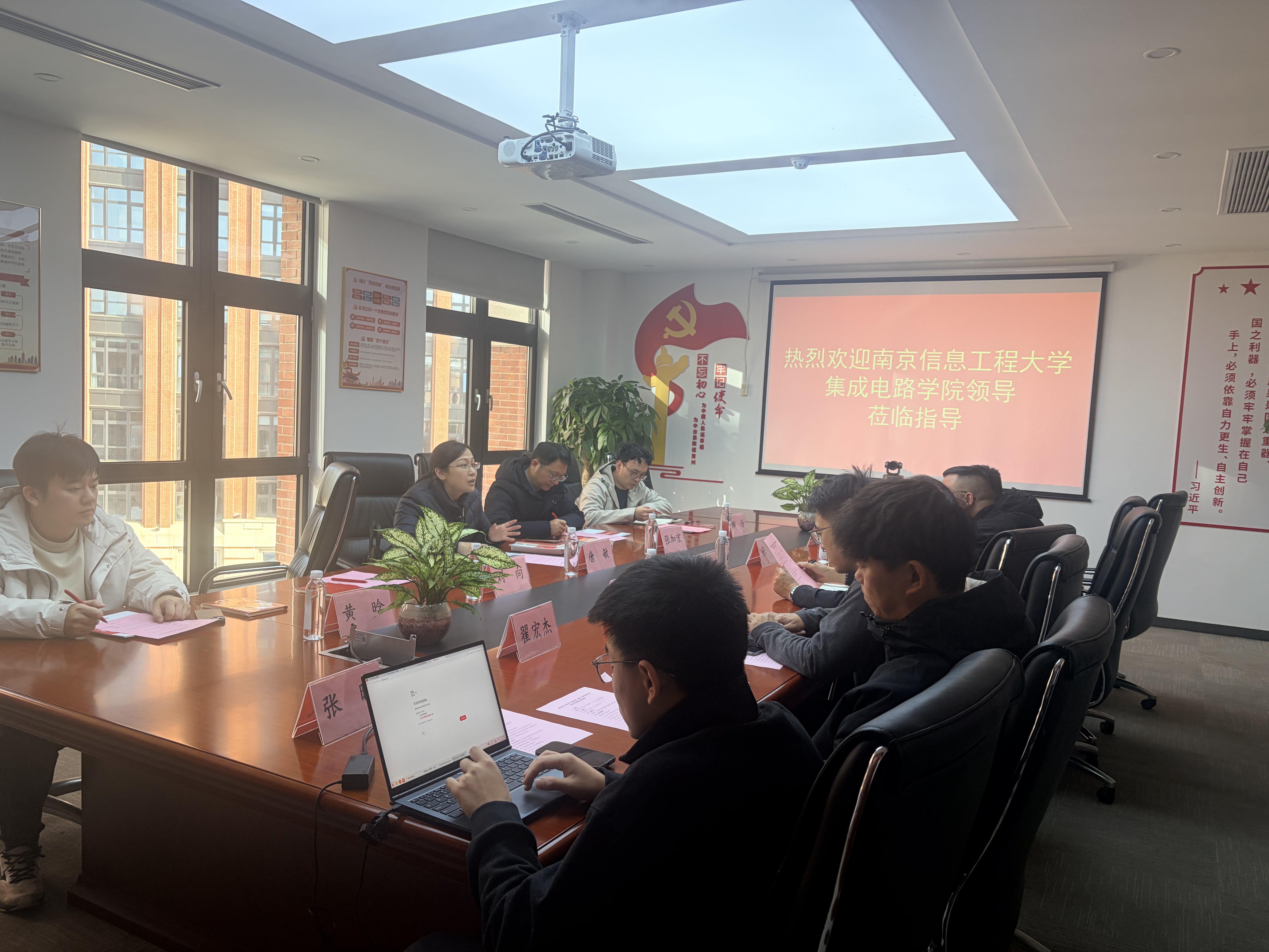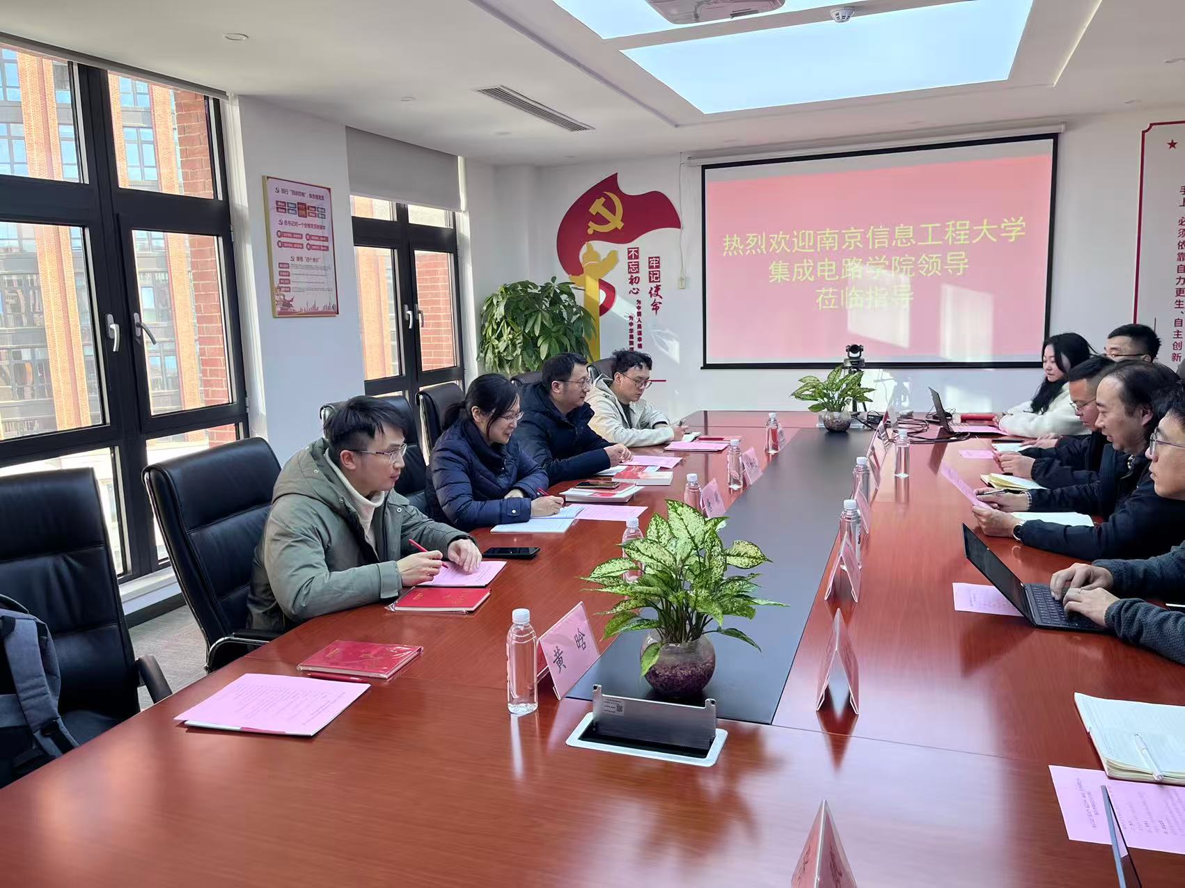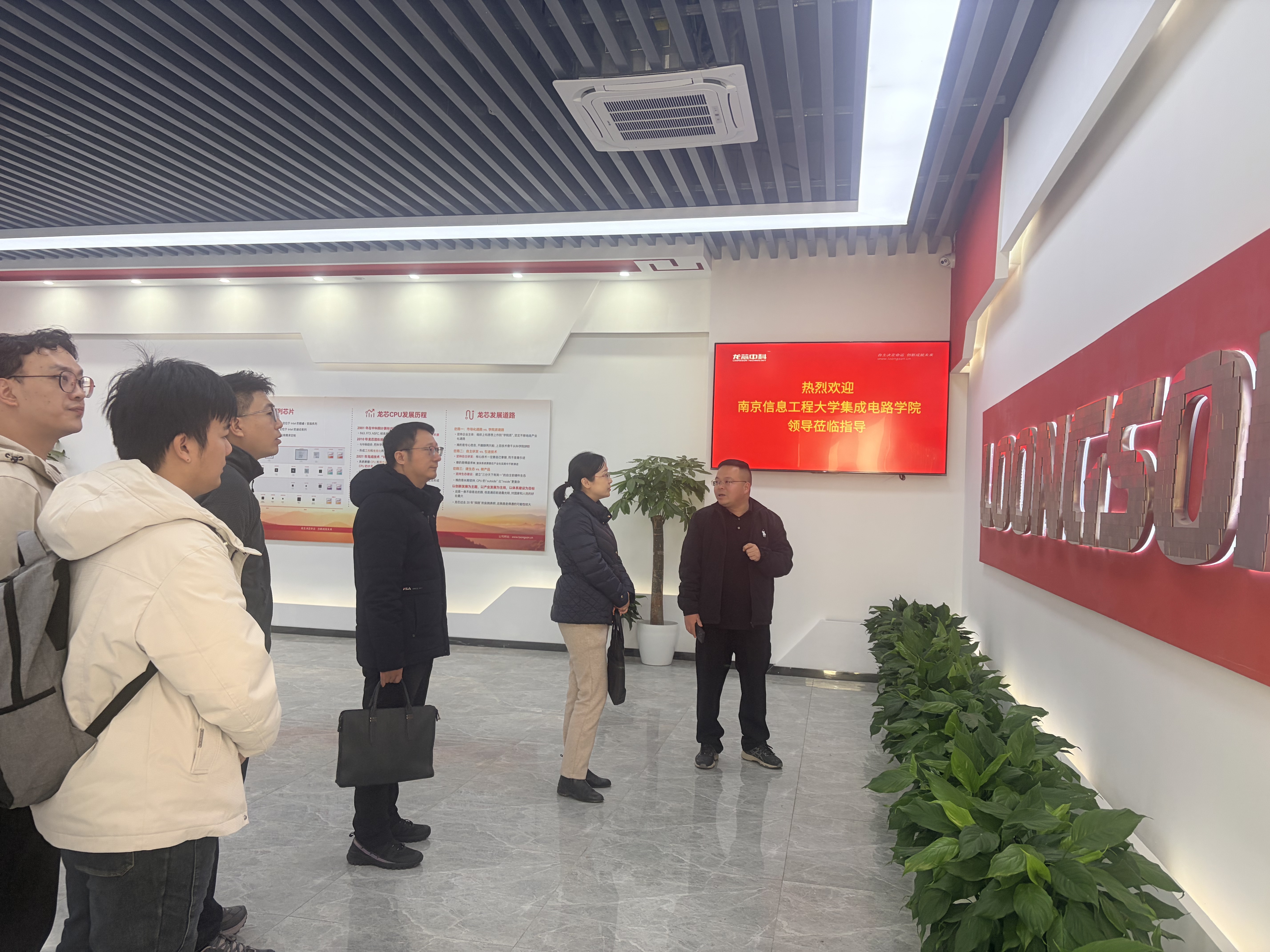 当前,集成电路作为国民经济和社会发展的战略性、基础性产业,其自主可控发展离不开高校与龙头企业的深度协同。为锚定“产教融合、科教融汇”的人才培养与科研攻关方向,12月16日下午,南京信息工程大学集成电路学院党委书记唐敏、副院长张加宏带队,赴龙芯中科(南京)技术有限公司开展校企合作专题研讨会,龙芯中科教育事业部总经理杨昆、销售总监张双、技术总监凌阳等企业核心团队全程参与对接。
