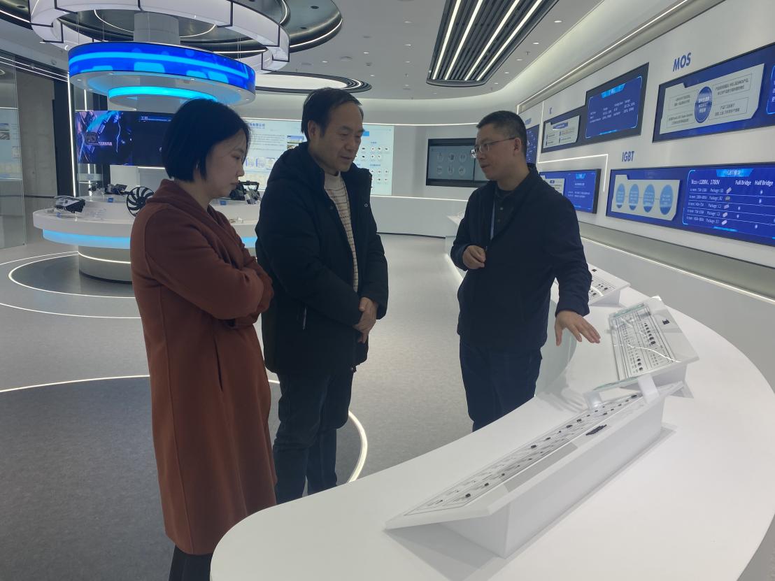 江苏长晶浦联功率半导体有限公司技术总监郭智热情接待,并详细介绍了企业以及集团的情况,公司发展历程和主要产品,企业在发展过程的主要技术瓶颈和人才需求。座谈会上,程知群介绍了学院入住浦口经开区后,在推动校企合作方面发挥的作用,重点强调了学院在培养高质量技术人才、推动科研成果转化以及为企业提供定制化支持方案等方面的优势。座谈会后,参观了公司展厅和生产线。